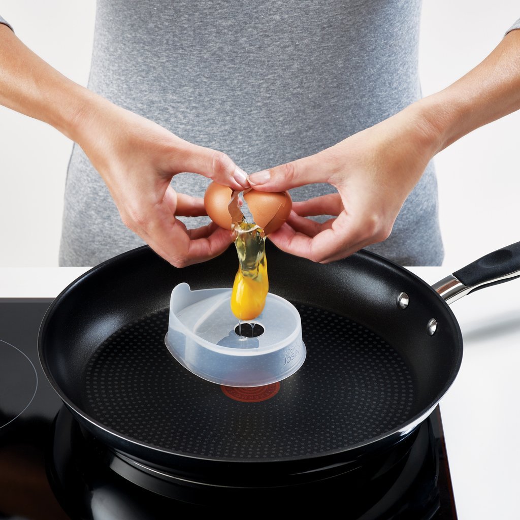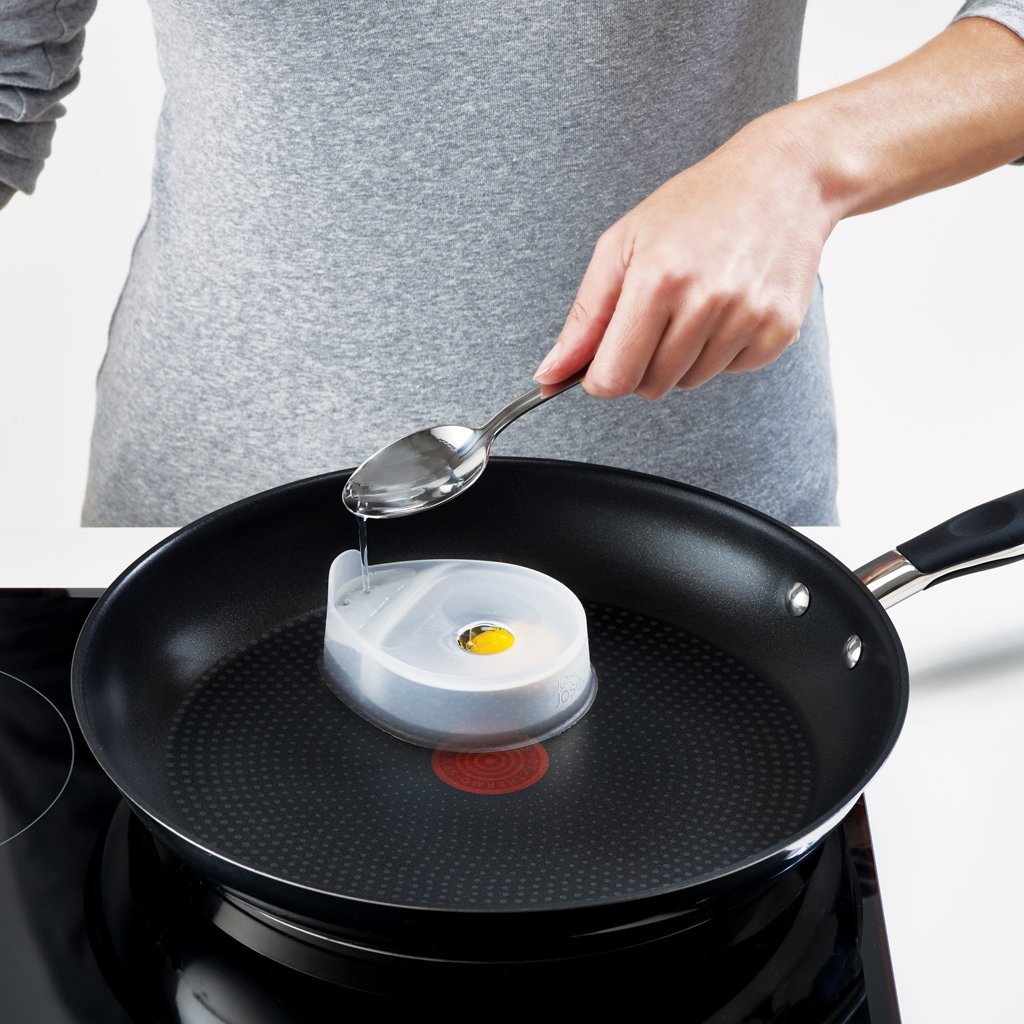Нов и по-здравословен начин за приготвяне на яйца - JOSEPH JOSEPH Froach Pods. Той съчетава принципа на пържене с метода на приготвяне на яйца на очи. С лесните за използване шушулки Froach спестявате 95% от олиото, необходимо за нормално пържене. Принципът на използване на шушулките Froach е много прост. Силиконовият пръстен има малка купа за няколко чаени лъжички вода. Когато водата се нагрява по време на приготвянето, тя се превръща в пара, която циркулира и сготвя яйцата. Междувременно дъното на яйцето се пържи в тигана по обичайния начин, но то не залепва за тигана поради влагата на парата.