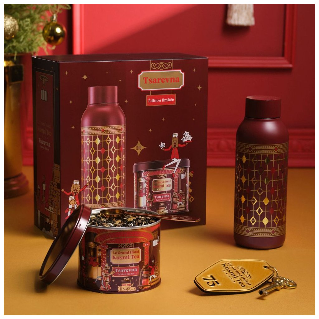 Комплект за чай TSAREVNA 120 г насипен чай в кутия + термо бутилка 510 мл, Kusmi