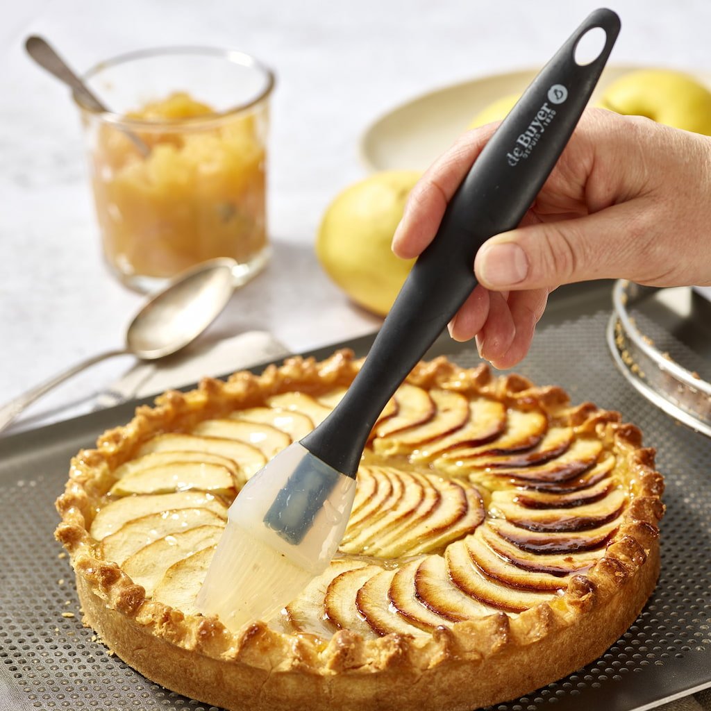 - Силиконовата четка de Buyer е практичен помощник за намазване с яйце, масло или глазура при приготвяне на сладки и солени ястия.