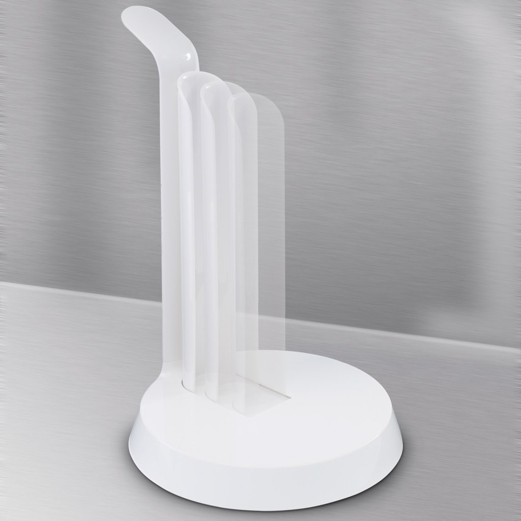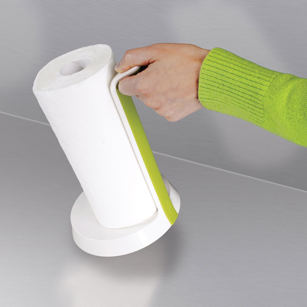 Чувствате ли се някога така, сякаш може да използвате повече от две ръце в кухнята? Ето защо всички дейности, при които може да се спести сътрудничество втора ръка, са голямо облекчение. Държачът за кърпи Joseph Joseph може да се управлява само с една ръка. Размотаването се извършва срещу ръба на страничната част, което също така предотвратява неволното размотаване на ролката. Здравата, по-тежка основа осигурява перфектна стабилност на държача, дори когато вземате кърпата, докато тичате към печката. Централната ос се регулира според ширината на ролката и е постоянно притисната към вертикалната част благодарение на регулиращата пружина. Стабилността и контролът на ролката са винаги 100% сигурни.