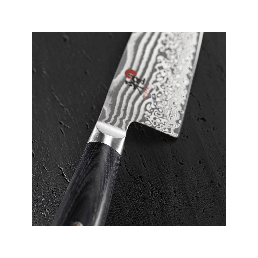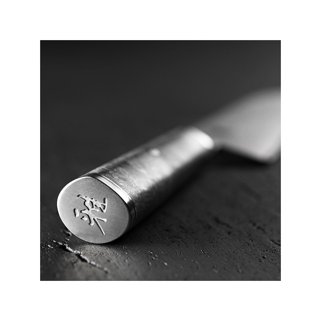 Сърцевината е изработена от двойно закалена хромирана стомана FC61. За да се постигнат още по-добри свойства, е използван уникален процес на закаляване CRYODUR®, при който стоманата се замразява при -196°C. Полученият материал се отличава с изключителна твърдост. Дамаскинът е създаден от допълнителни 48 слоя неръждаема стомана, като моделът на всеки нож е уникален. Традиционното ръчно заточване Honbazuke е доказано от стотици години работа на майстори ножари. Това е многоетапен процес на заточване, при който ножът първо се заточва с вертикален и хоризонтален въртящ се шлифовъчен камък, а накрая острието се полира с кожен хонинговащ колан. Симетричното заточване и ръбът Katana осигуряват лесно проникване през груба повърхност. Изрязаната буфер предотвратява плъзгането на пръстите по острието.