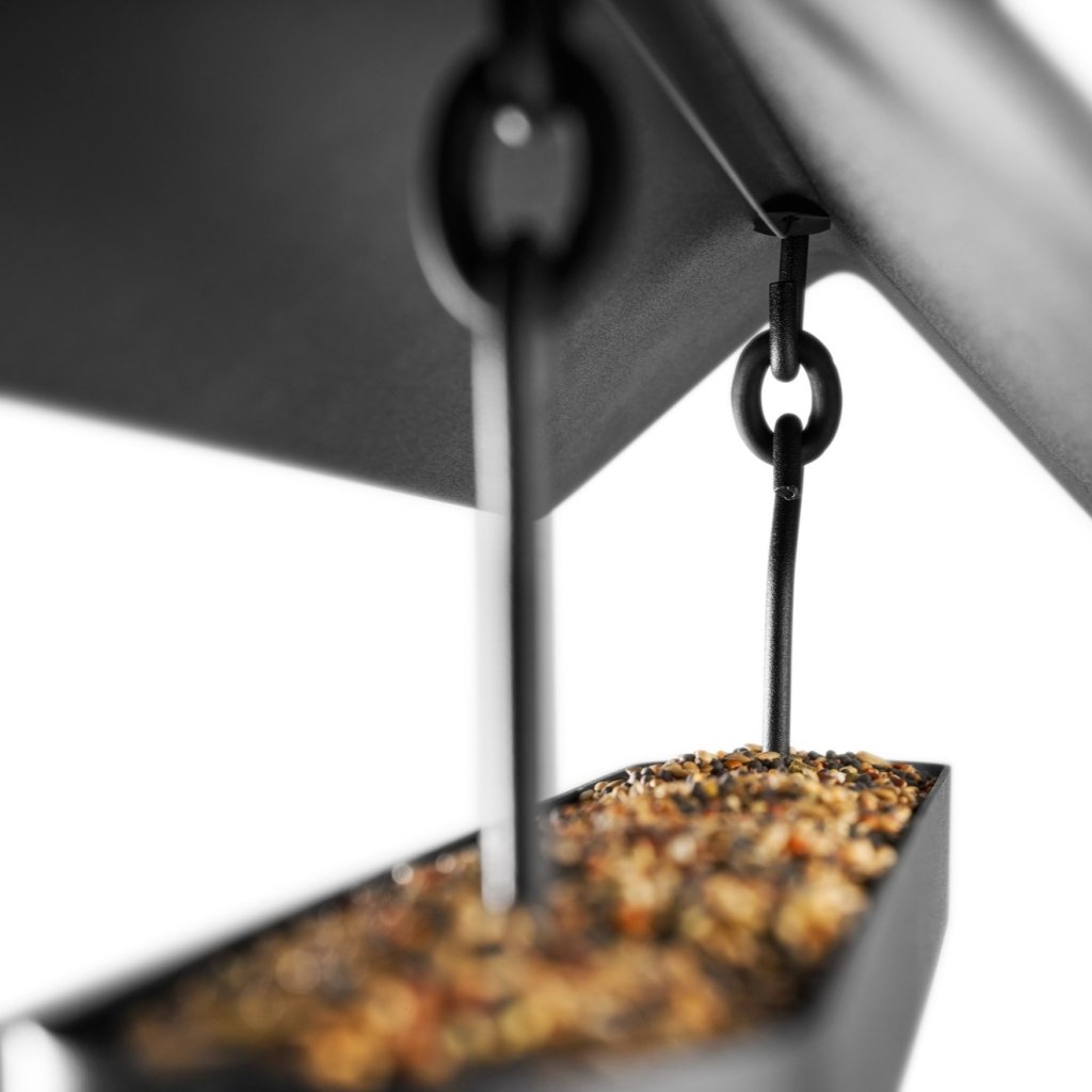 - Окачването на тънки стомана жици придава на хранилката елегантен вид и същевременно осигурява стабилност при вятър