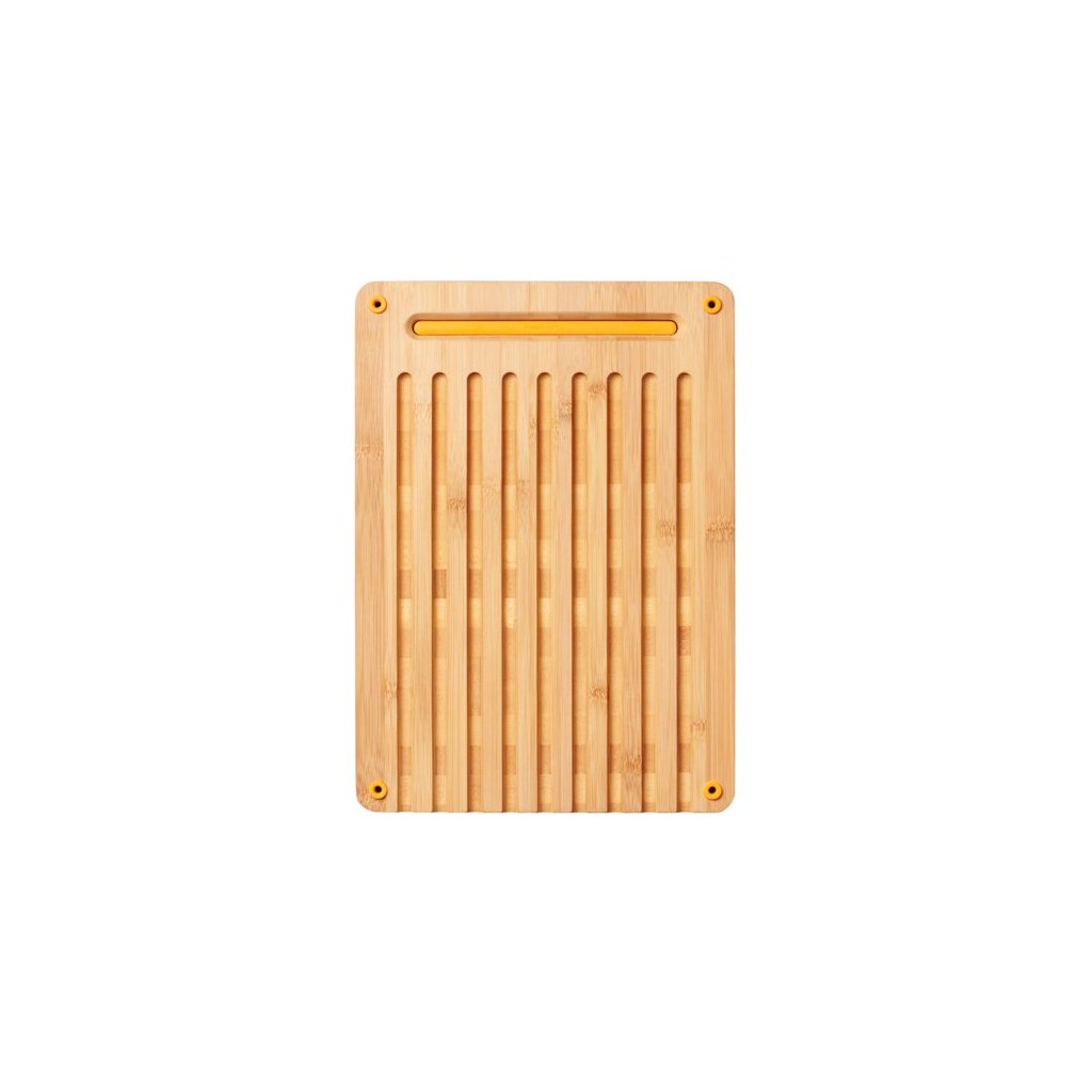 Плоската бамбукова дъска за рязане е идеална за приготвяне на зеленчуци, плодове, билки, месо, както и за нарязване, подреждане и сервиране на сирене и колбаси. Тя има неплъзгащи се силиконови крачета и вграден силиконов ограничител в горната част на дъската за рязане за подреждане на пластмасовата дъска и дъската за рязане с прорези. Стоперът може да се използва и за безопасно почистване на острието на ножа и за изтриване на остатъците от повърхността на дъската за рязане.
