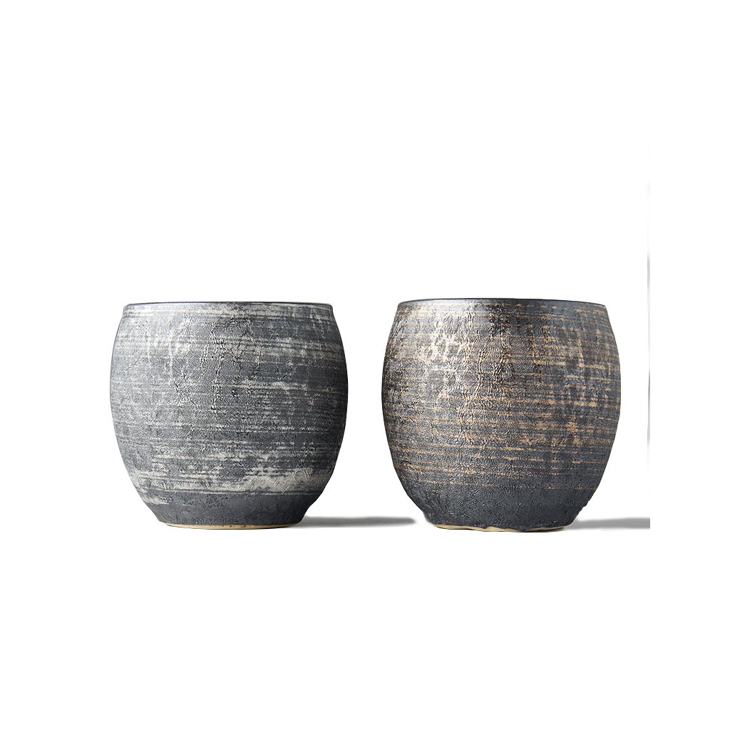 Малки оригинални чаши Шо-чу за традиционно японско саке (оризово вино) или чай. Всяко изделие има красиво покритие, което съчетава два цвята. Едната чаша е с тъмносив цвят със сребристи оттенъци, а другата - с бронзови оттенъци. Чашите се предлагат в елегантна черна кутия.