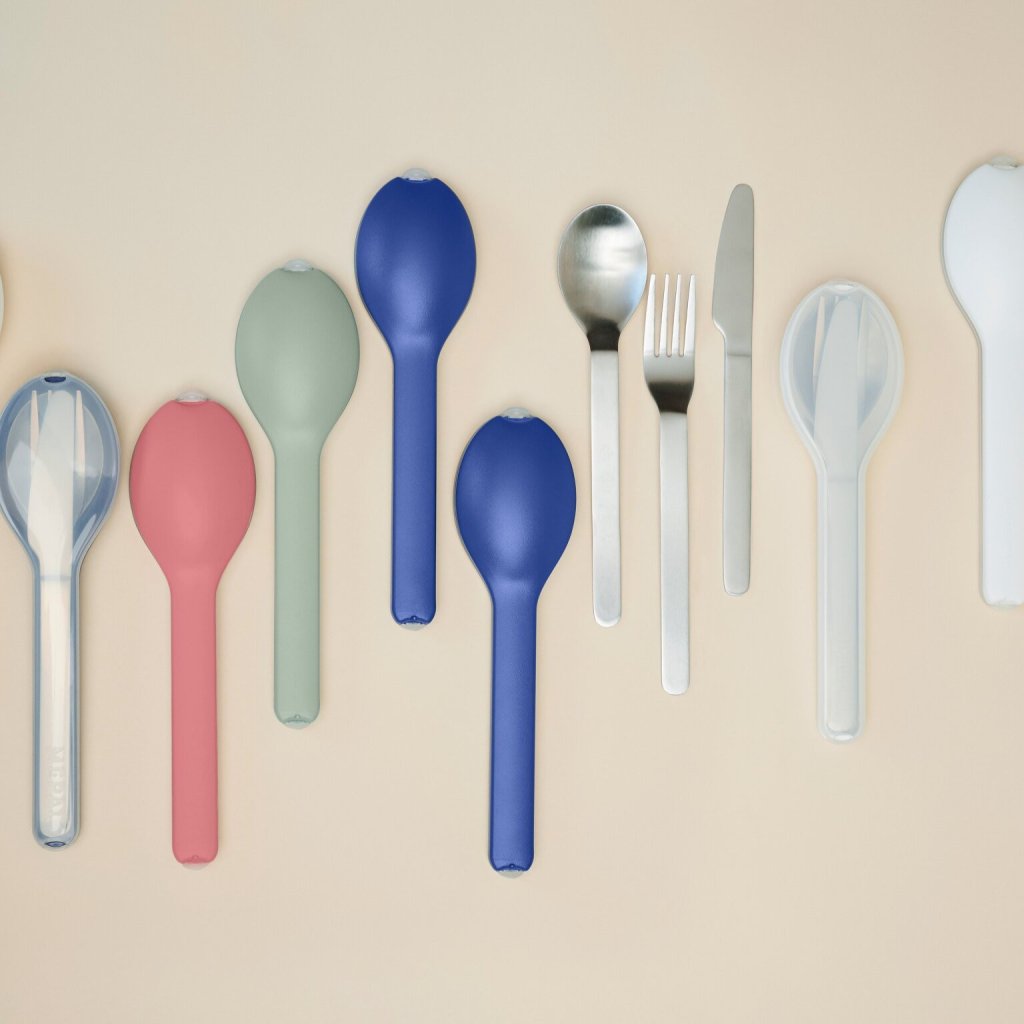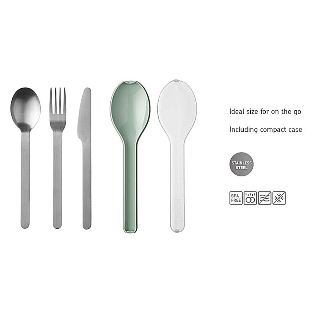 - включва нож, вилица и лъжица, което го прави идеален за обяд в офиса, по време на пътуване или в училище