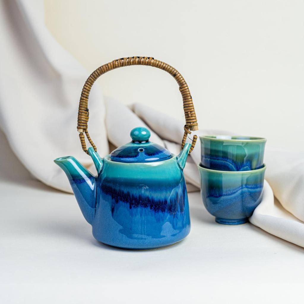 - Комплект за чай BLACK COBALT TEAL се отличава с отчетлива синьо-тюркоазена глазура и традиционен японски дизайн, който превръща всяко сервиране на чай в естетически ритуал.