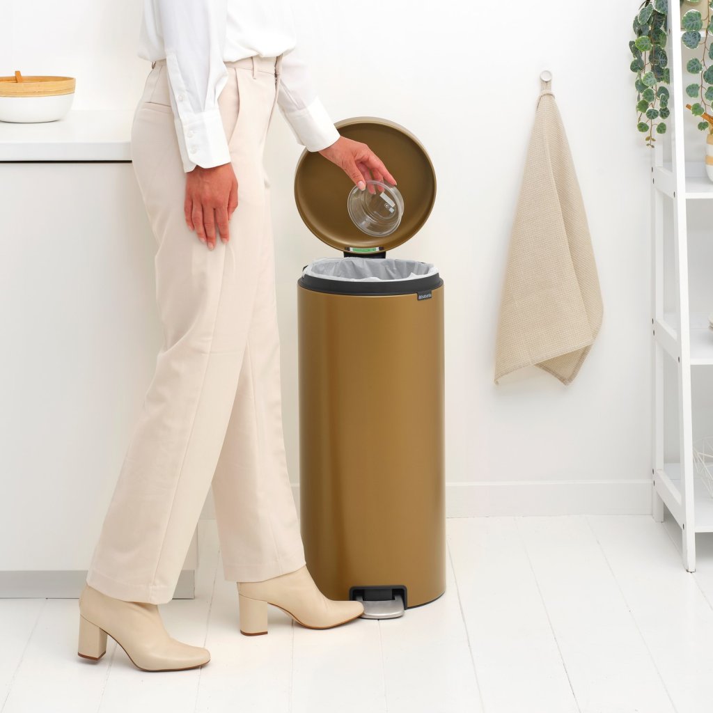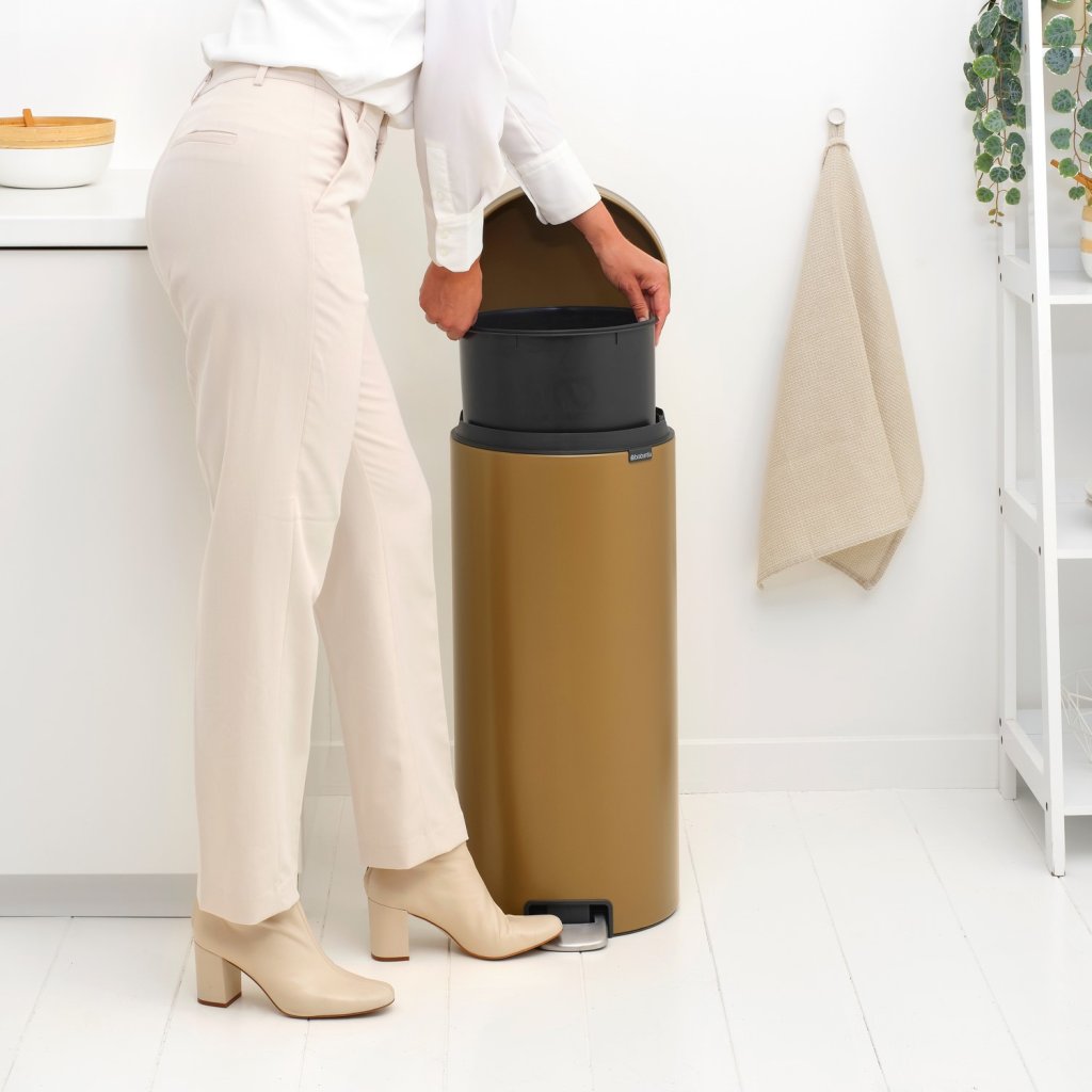 - кошче за отпадъци с педал Brabantia NEWICON в топъл месинг нюанс е практично и елегантно решение за ежедневни отпадъци