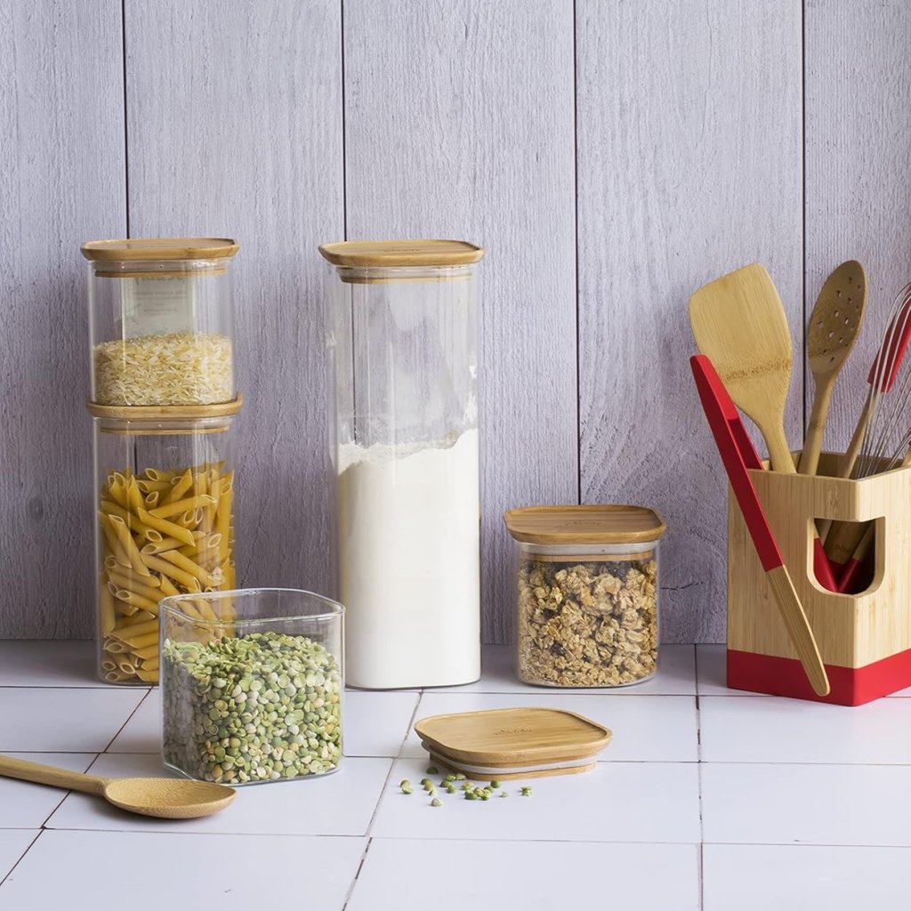 - идеален за съхранение на различни сухи храни и съставки, като пресни билки, подправки, ориз, макаронени изделия и др.