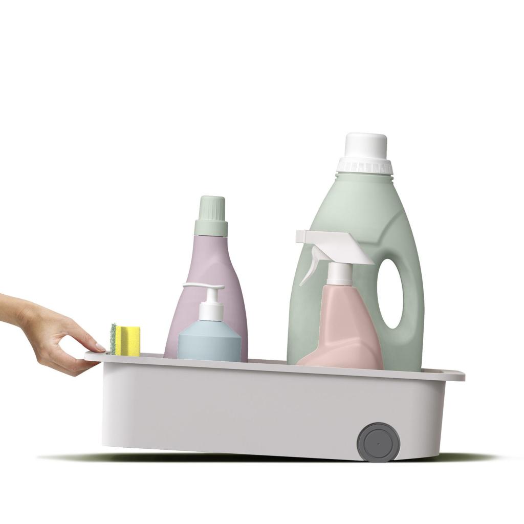 - Гладката пластмасова повърхност улеснява почистването на органайзера и помага пространството под мивката да остане хигиенично чисто.