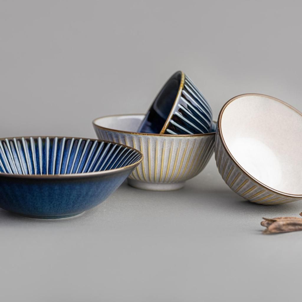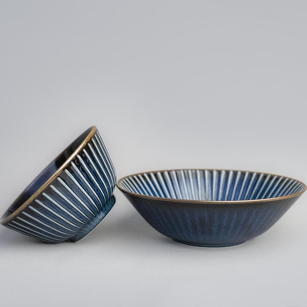 - Керамичната купа от колекцията NAVY SENDAN с диаметър 17 см се отличава с отчетлива лъчиста шарка и дълбока синя глазура, която придава на сервирането модерен японски характер с акцент върху детайла.