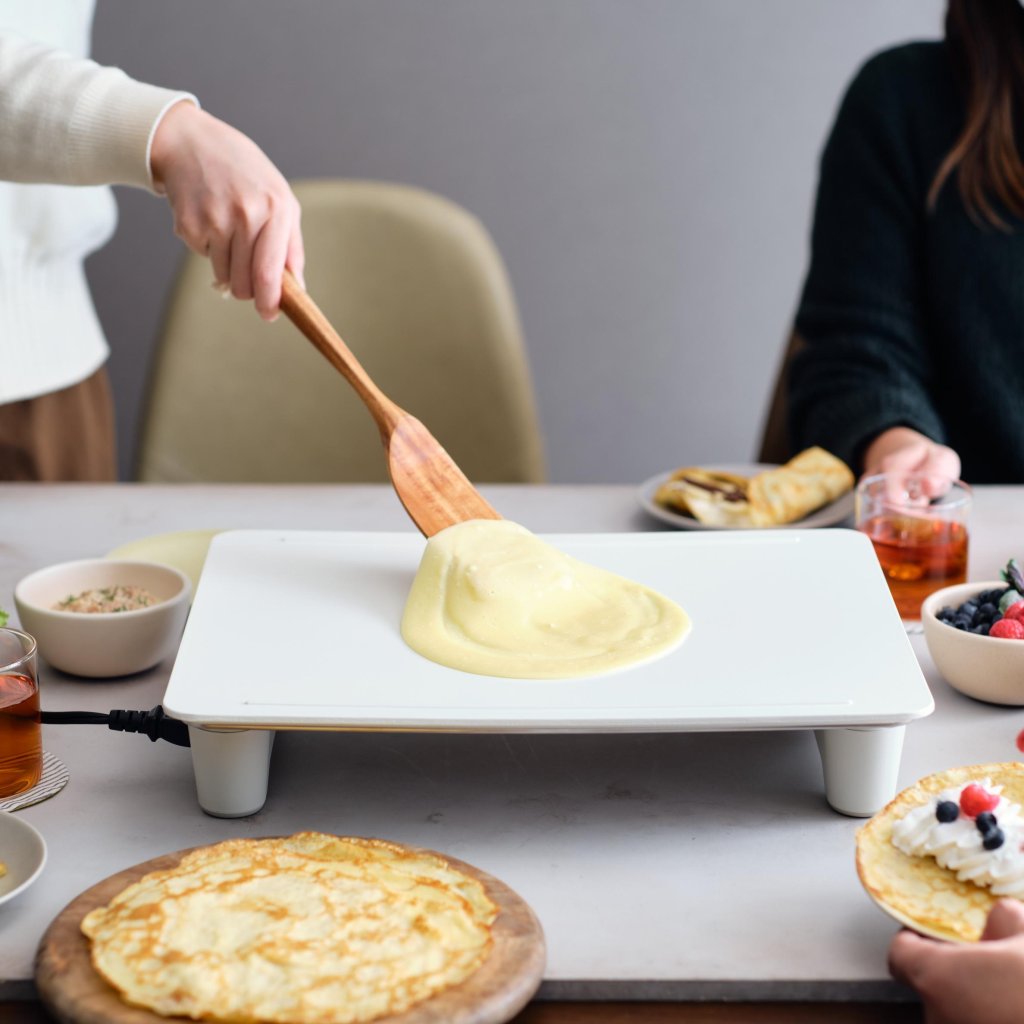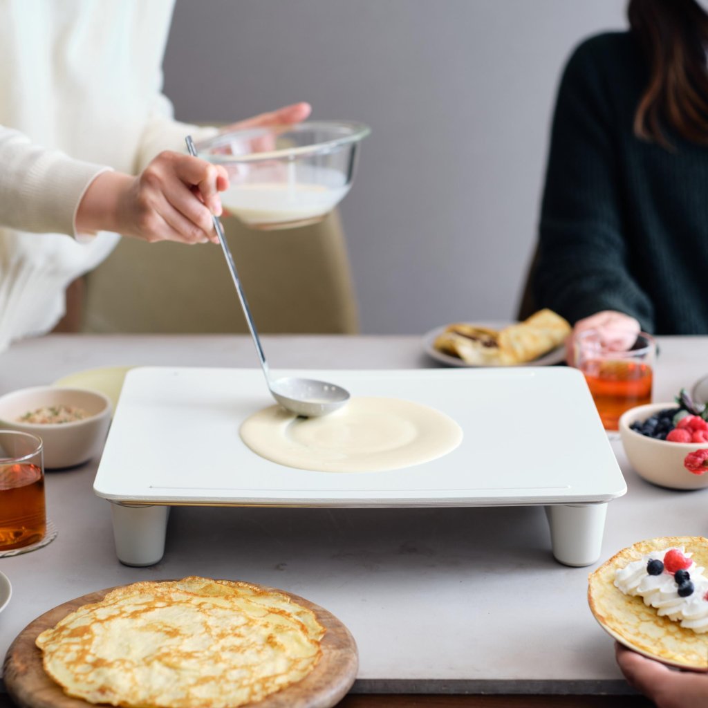 - Със своя елегантен плосък плоча за барбекю и тънък профил, той внася японско тепаняки кулинарно изживяване във вашата кухня и трапезна маса - готвене, което обединява.