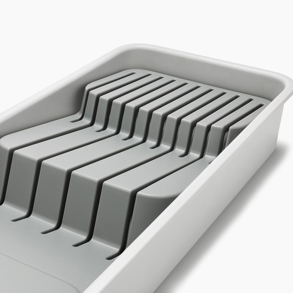 - Компактният органайзер за ножове Joseph Joseph DRAWERSTORE позволява безопасното съхранение на кухненски ножове директно в чекмеджето.