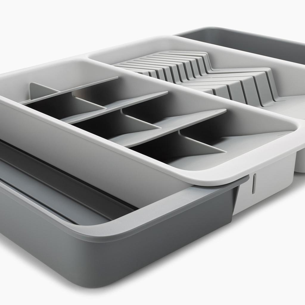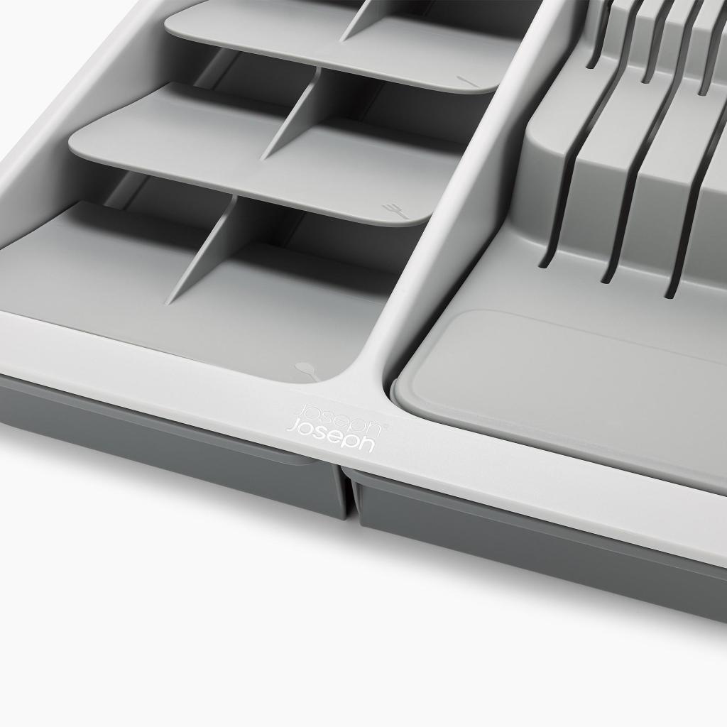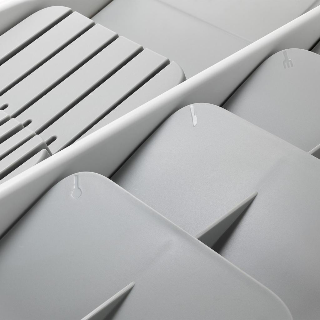 - Органайзер за чекмедже Joseph Joseph DRAWERSTORE помага за подреждането на прибори, ножове и прибори за готвене в кухненското чекмедже.