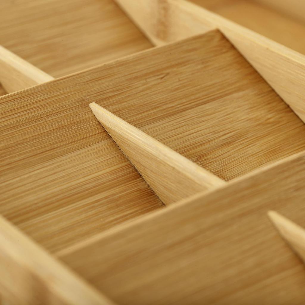 - Органайзер за чекмедже Joseph Joseph DRAWERSTORE от естествен бамбук помага за подреждане на прибори, прибори за готвене и дребни помощни средства, така че ежедневната работа в кухнята да е много по-удобна.