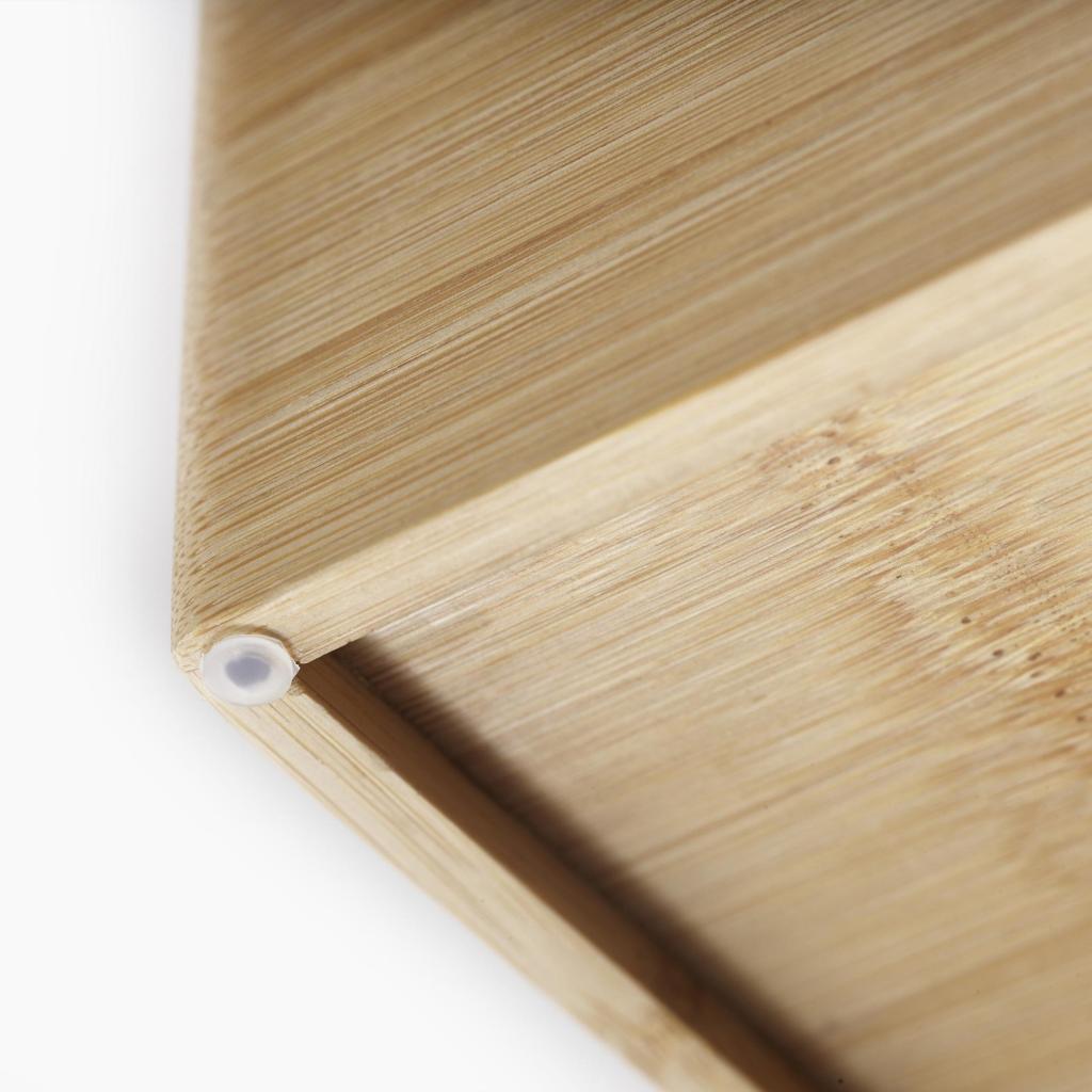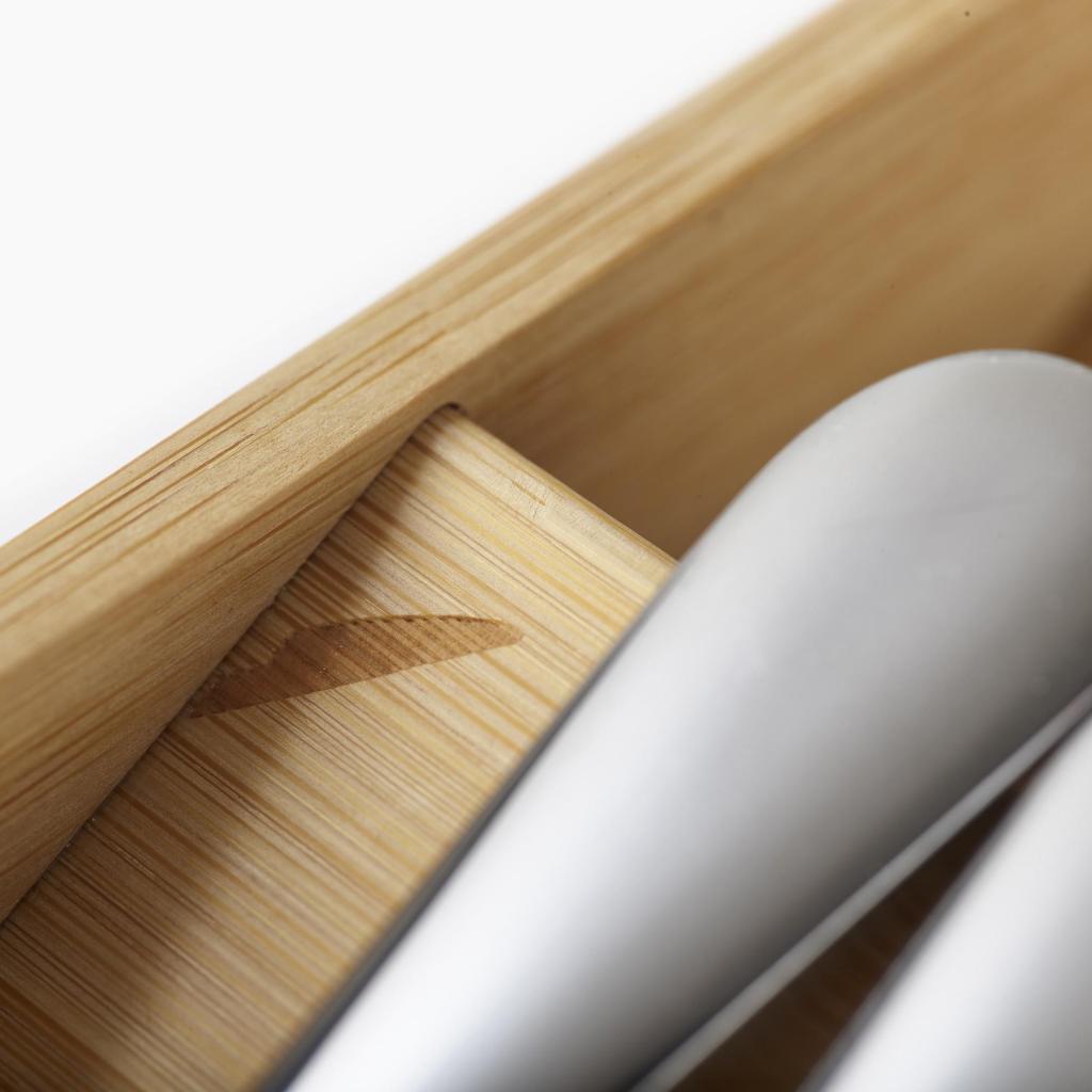 - Естественият бамбуков материал придава на органайзера елегантен вид, като същевременно осигурява здрава и издръжлива конструкция.