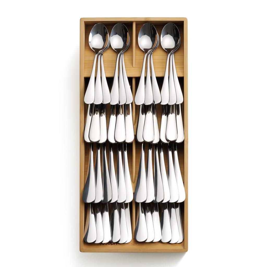 - Органайзер за прибори Joseph Joseph DRAWERSTORE позволява подредено съхранение на пълен комплект прибори в чекмеджето на кухненския шкаф.