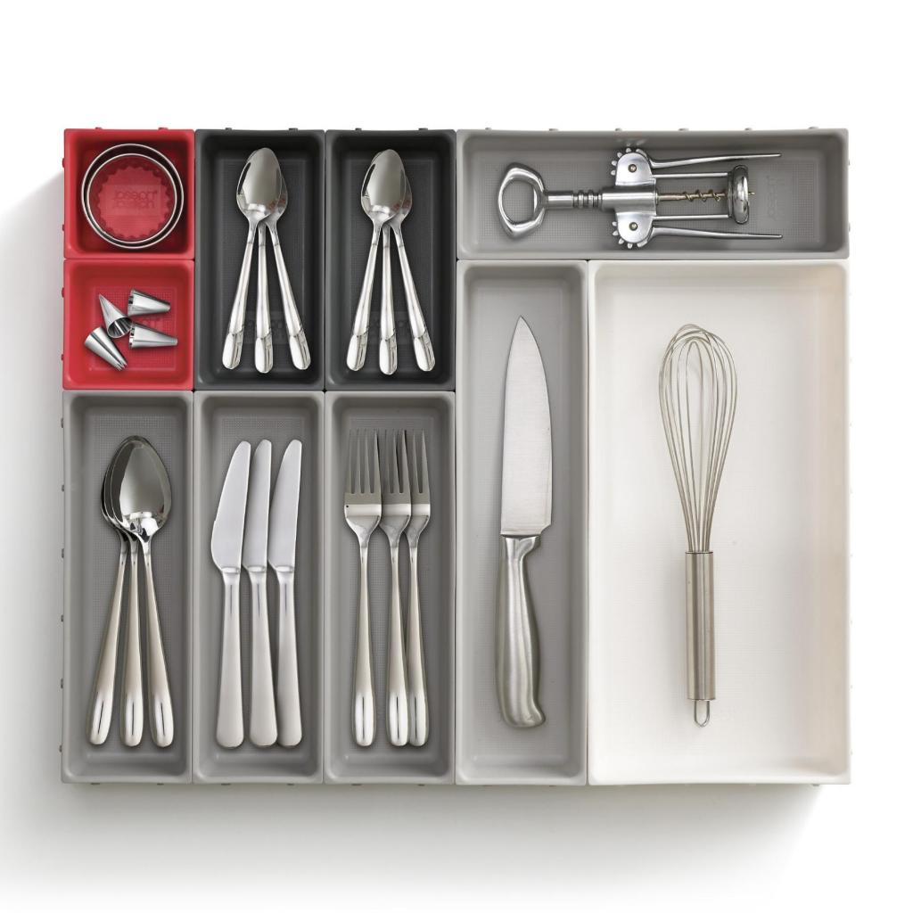 - Вариабилен органайзер за чекмедже Joseph Joseph DUO BLOX предлага максимална гъвкавост при подреждането на пространството в кухнята, офиса и работилницата.