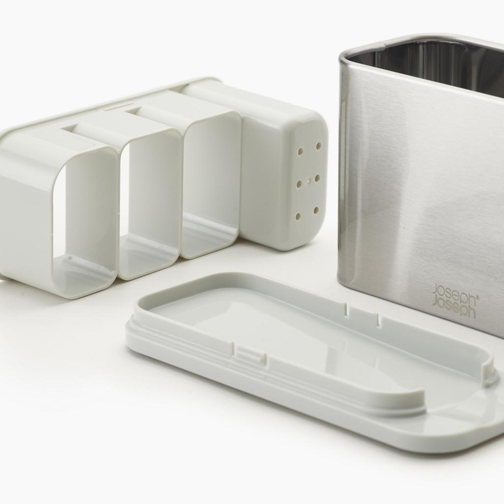 - Отцедник за прибори Joseph Joseph SURFACE помага за поддържане на работната повърхност на мивката чиста и позволява удобно сушене на приборите за хранене след измиване.