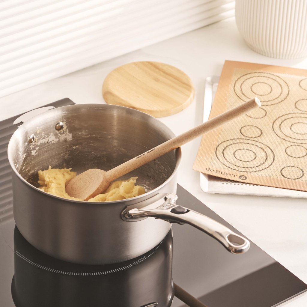 - Визуално дискретният дизайн с дискретно лого de Buyer и печат на марката допринася за професионалния вид на кухненското оборудване.
