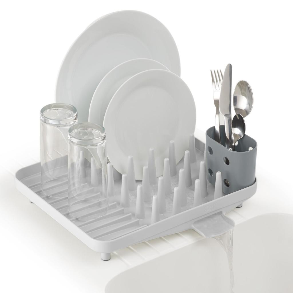 - Компактният съд за отцеждане Joseph Joseph DUO е практично решение за ежедневно сушене на съдове в по-малки кухни или там, където трябва да се пести място на работния плот.