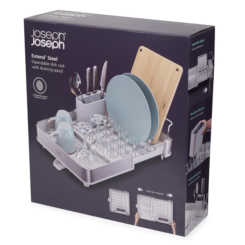 - Поставка за сушене на съдове Joseph Joseph EXTEND предлага гъвкаво решение за сушене на съдове благодарение на разширяем дизайн, който се адаптира към текущите нужди на вашата кухня.