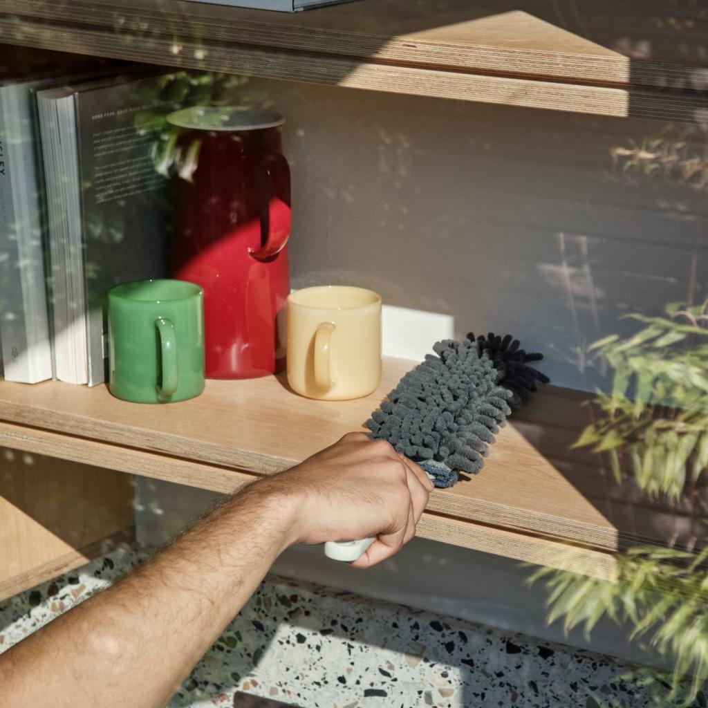 - Меката страна от микрофибър е подходяща за гладки повърхности, като мебели, рафт, первази на прозорци и електроника в хола.