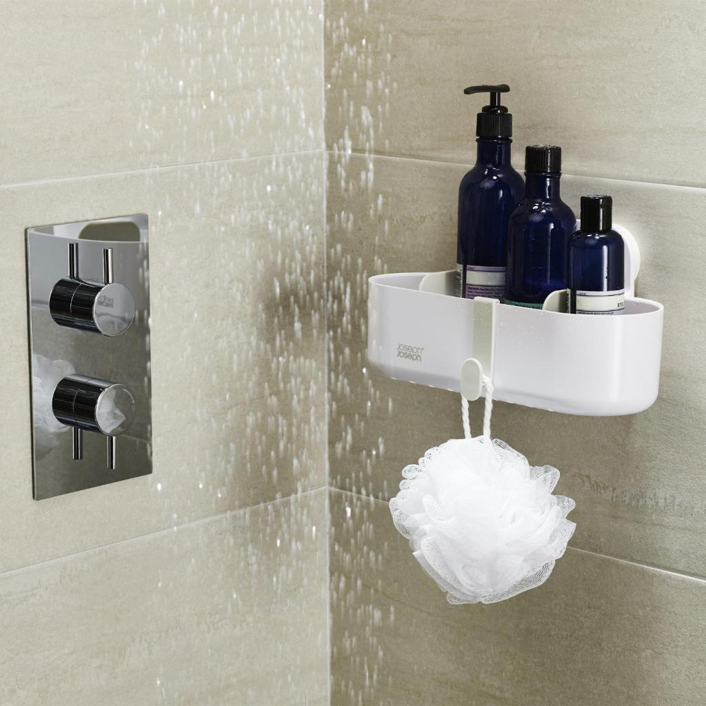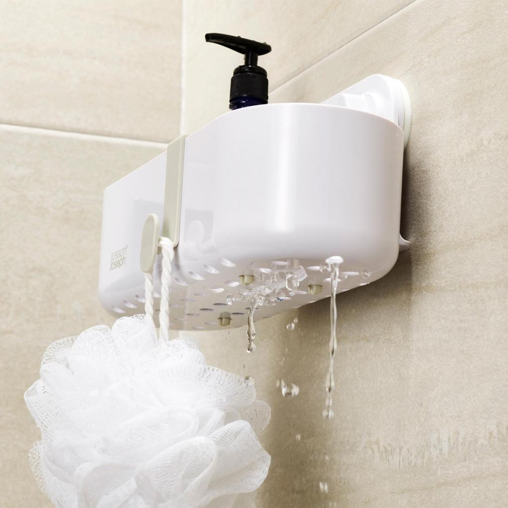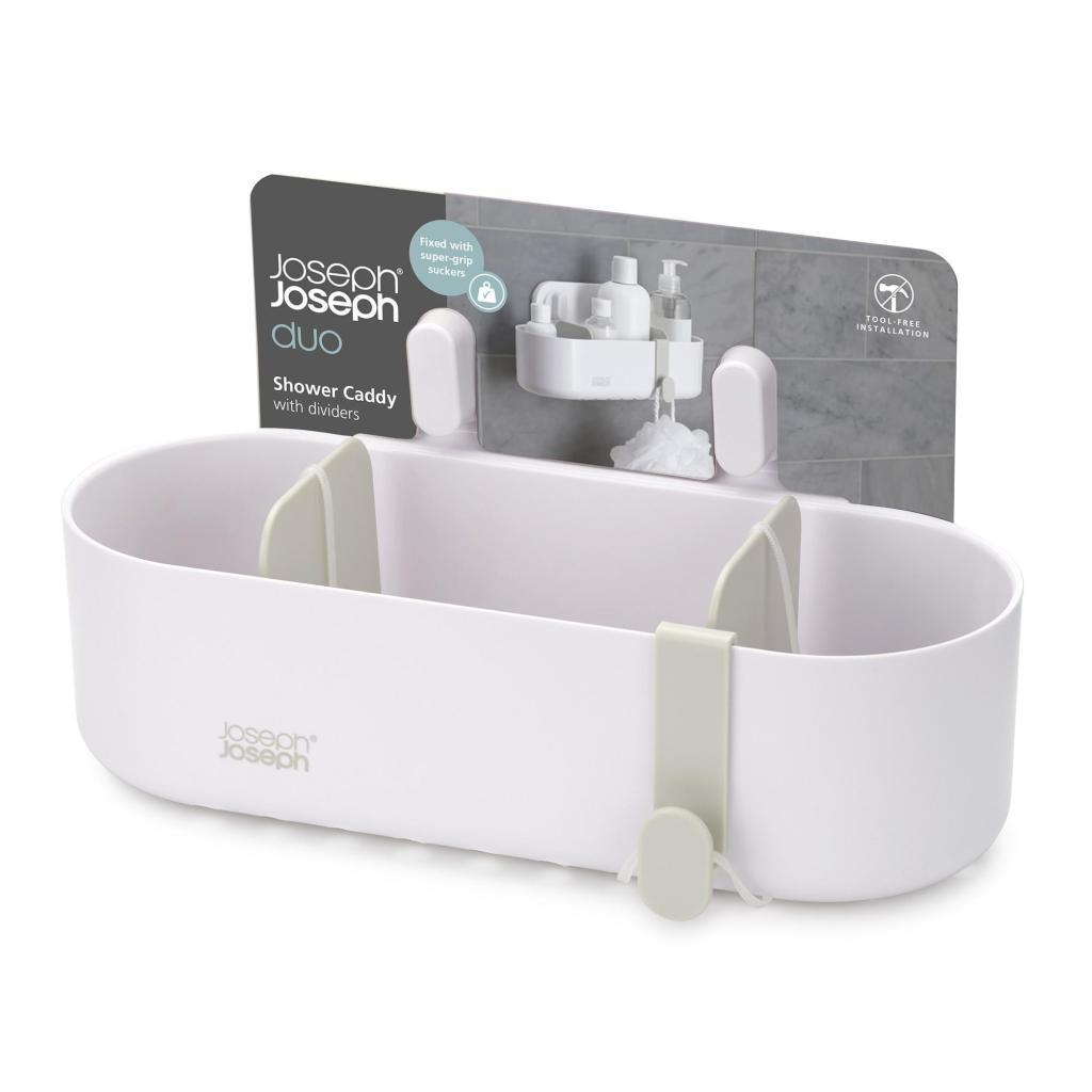 - Рафт за душ Joseph Joseph DUO предлага практично решение за подредено съхранение на сапун, шампоан и душ гел директно в пространството на душ кабината.