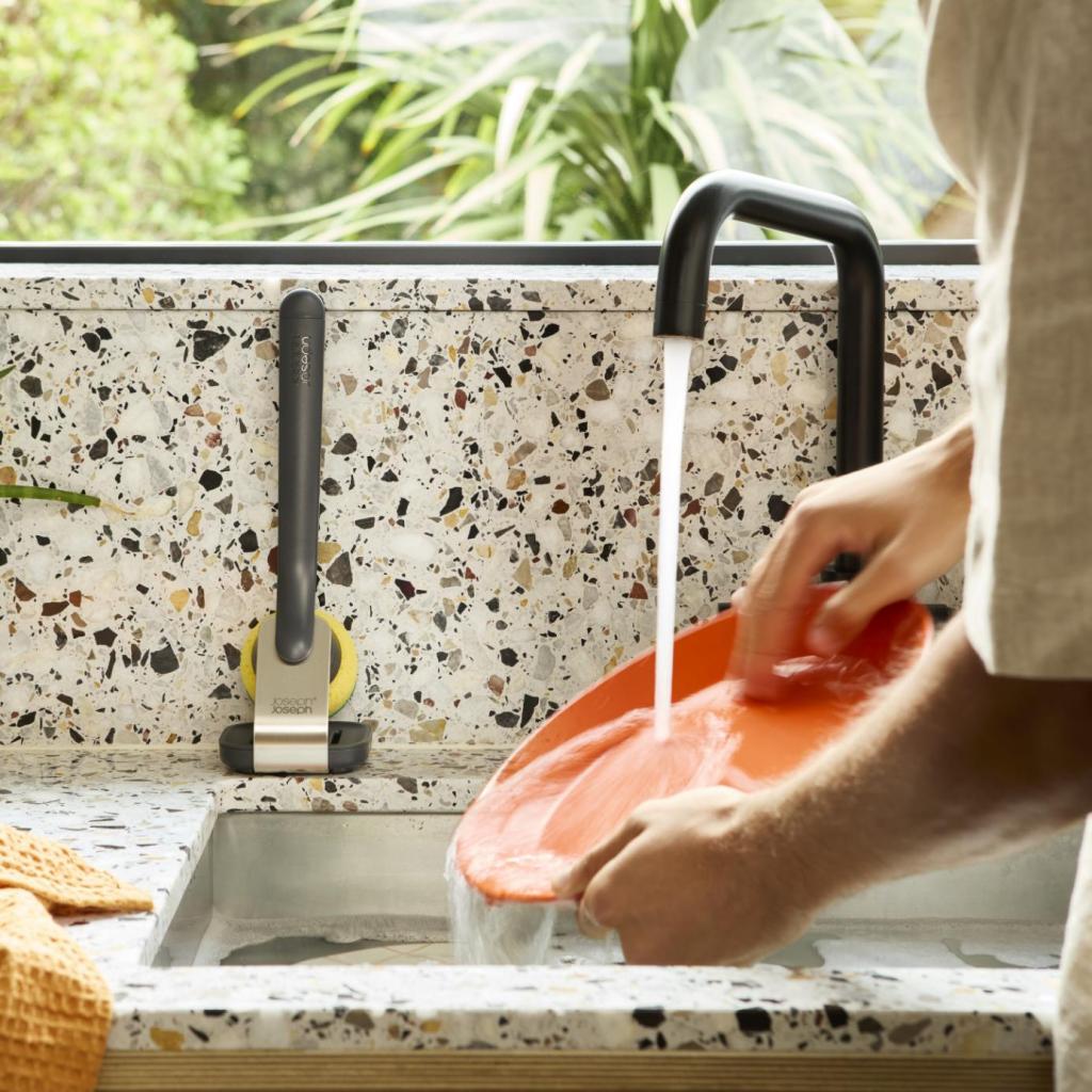 - Комплектът съдържа две сменяеми глави, съвместими с всички четки Joseph Joseph SINKTECH.