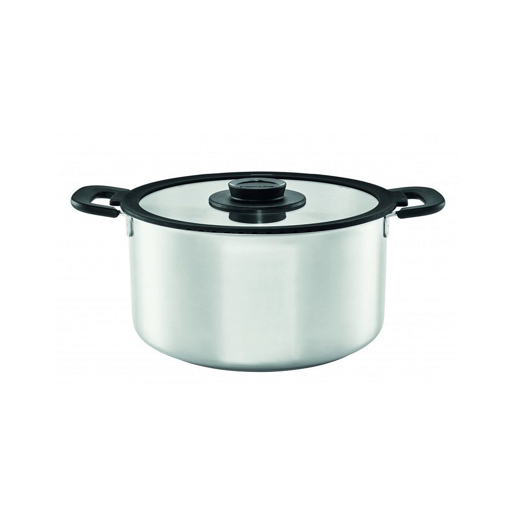 7-литровият съд с удобна мерителна чаша е изработен от изключително издръжлива неръждаема стомана 18/10. Поради това повърхността му се нагрява бързо и съдът е подходящ за всички видове котлони.