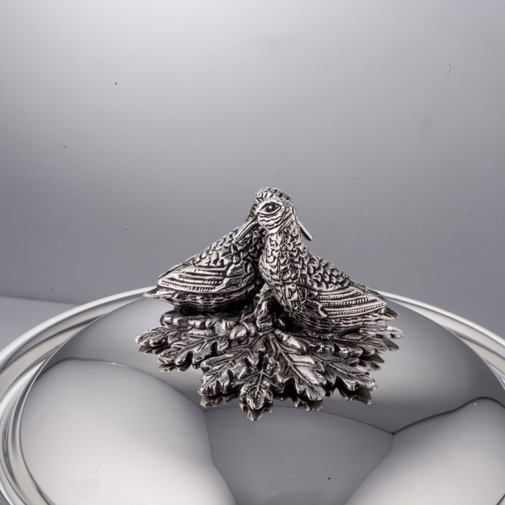 - масивна неръждаема стомана капак за тенджера с дръжка с красива декорация, която е ръчно отлята от масивен бронз и посребрена