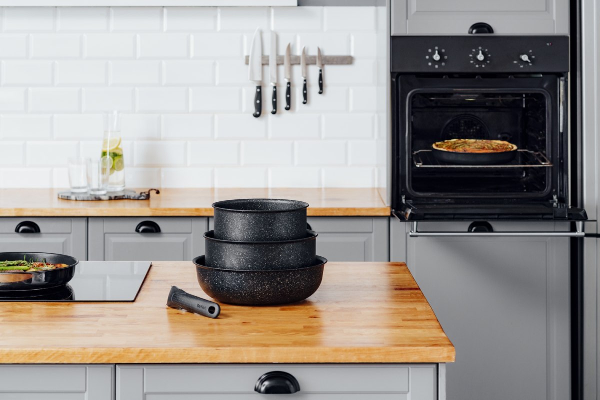 Опростете готвенето с незалепващите съдове за готвене, които могат да се подреждат един върху друг