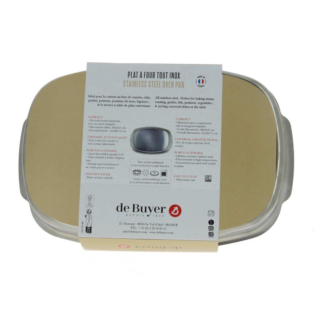 - неръждаема стомана тенджера за фурна de Buyer с размери 38×26 см е идеален за приготвяне на разнообразни ястия - от печено месо до зеленчукови гратени