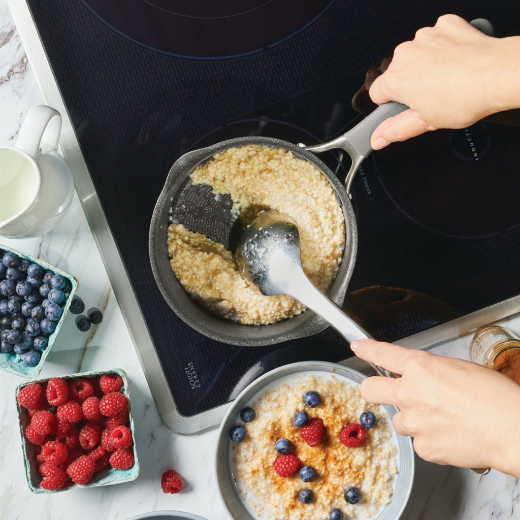 - специалната технология ScratchDefense, използваща издръжливост от аерокосмически клас, елиминира риска от надраскване, отлепване и залепване на храна