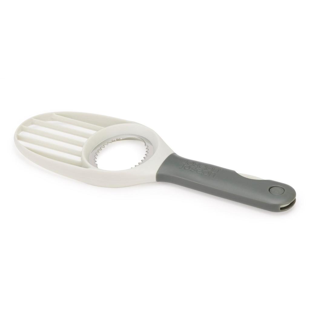 - Практичният уред за рязане на авокадо Joseph Joseph DUO ви позволява удобно и безопасно да обелите, извадите костилката, да изрежете и нарежете авокадото с помощта на един компактен инструмент.