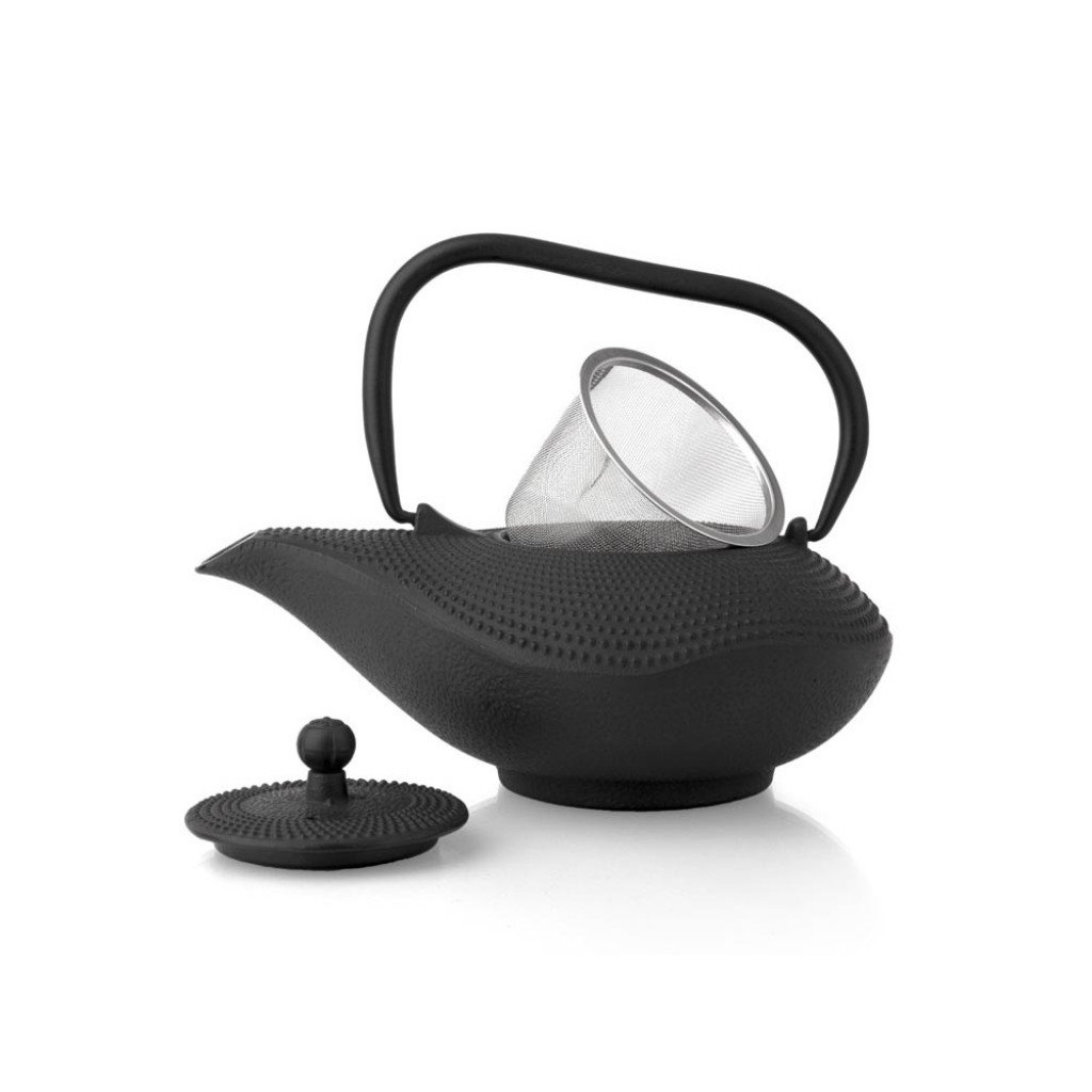 Чайникът Yantai има порцеланов капак с флорален мотив. Тъмносиният чайник е изработен от висококачествен чугун и има емайлирана вътрешност. Включен филтър за чай от неръждаема стомана.