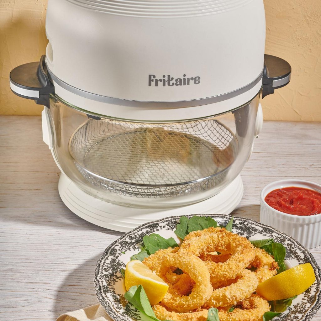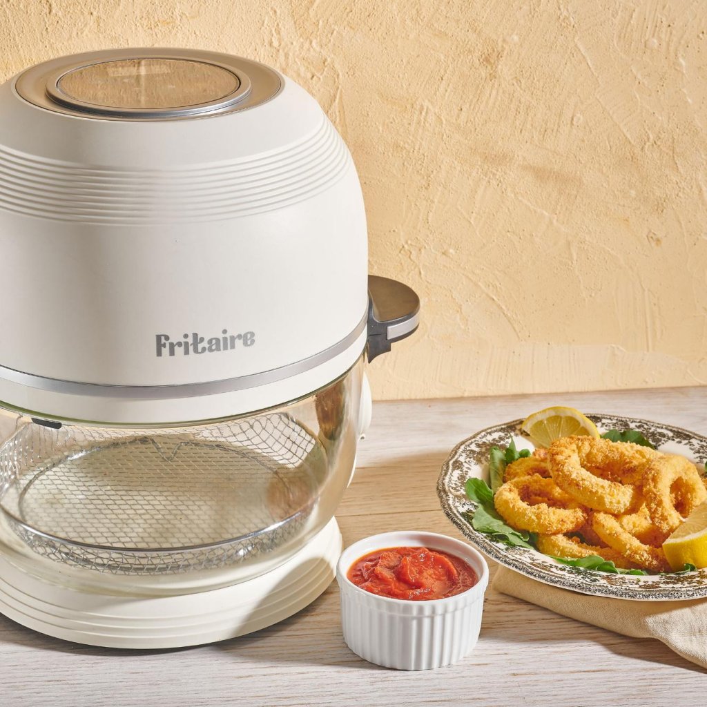 Въздушен фритюрник Fritaire е идеален за тези, които искат да се хранят по-добре, но отказват да се откажат от хрупкавия живот. Просто отворете капака, сложете любимите си грехове вътре и Fritaire ще направи това, което умее най-добре - ще ги трансформира в нещо по-леко, по-ефирно и все пак задоволително хрупкаво. Доста е лесно да ви убедим, че по-здравословната версия на пърженето всъщност изобщо не е компромис - тя е победа.