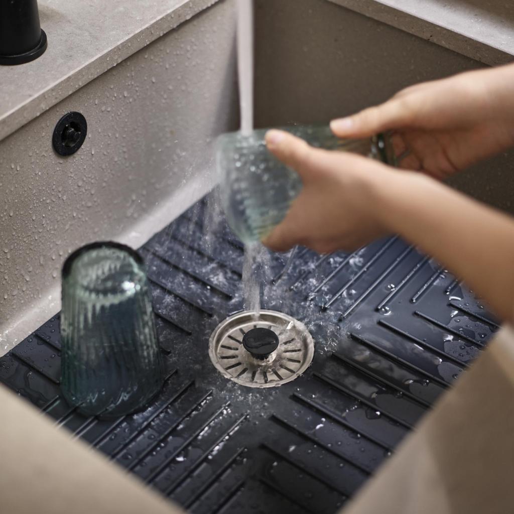 - Подложката е подходяща не само за защита на мивката, но и като практична повърхност за поставяне и отцеждане на измити съдове.