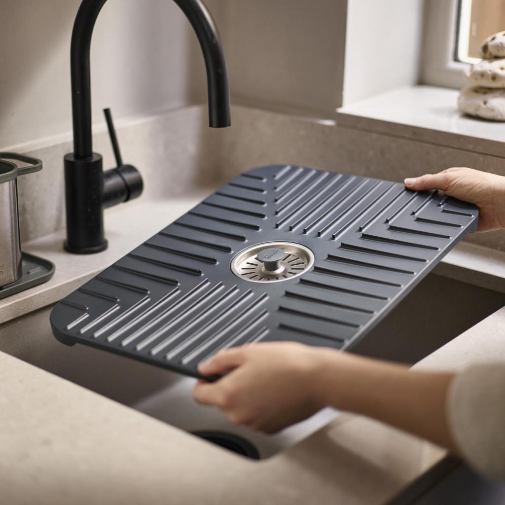 - Защитното защитна подложка за мивка Joseph Joseph SINKSHIELD помага за защита на мивката и съдовете по време на миене и същевременно създава практична зона за оттичане директно вътре в мивката.